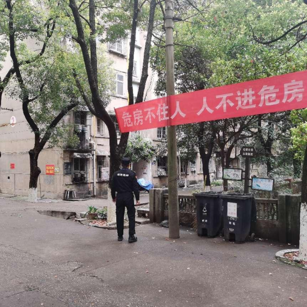 2023年轄區(qū)開展危房排查,項目配合上級主管部門做好危房的排查工作。3月份,雨水多,駐點保安員增加巡邏頻率,做好定時定點巡查和記錄,并通過喇叭提醒轄區(qū)住戶遠離危房,確保人身安全。