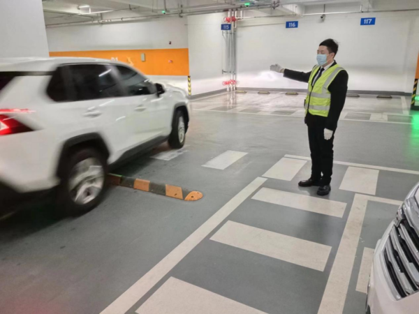 隊(duì)員們指揮引導(dǎo)進(jìn)出車輛,維持車場(chǎng)秩序,保持消防通道暢通;引導(dǎo)車輛安全、準(zhǔn)確停車位,并提示司機(jī)關(guān)好車門、車窗及車燈,帶好貴重物品;并負(fù)責(zé)車庫(kù)巡視,發(fā)現(xiàn)異常情況及時(shí)上報(bào)并做好記錄。